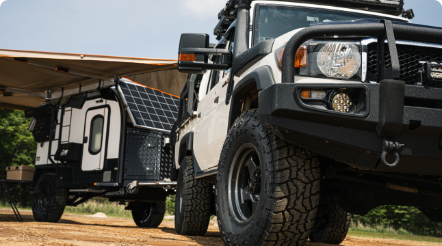 「オンもオフも見た目も妥協しないタイヤを探して。」四駆人気の高まりとともに求められていた、オンとオフをバランス良くこなすタイヤ。その声に応えるかたちで生まれたのが、GRANDTREK R/T01です。